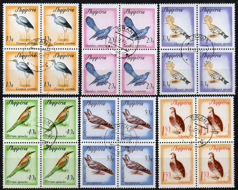 Albanien, Mi-Nr. 973 - 978 gest., kompl. im 4´er-Block, Zugvögel