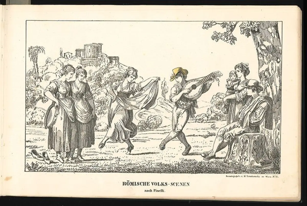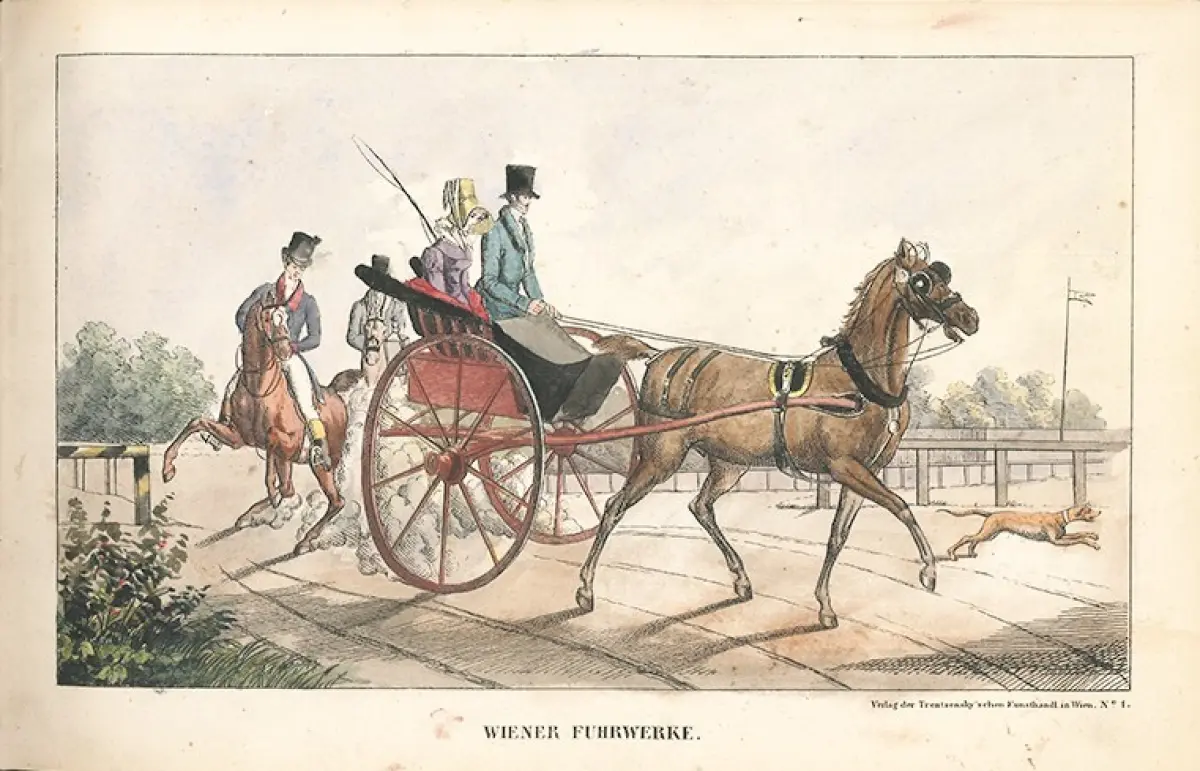 Bemerkungen: Nebehay-W. 746 - Sammlung von 78 meist aquarellierten Tafeln. Trentsensky war Schüler des Lithographen A. Kunike und betrieb ab 1822 zusammen mit seinem Bruder eine lithographische Anstalt in Wien. Populär wurde er durch die von ihm verlegten `Mandelbogen` (Bilderbogen) für die Jugend. Die tlw. hübsch kolor. Lithogr. zeigen Szenen aus den folgenden Reihen: Comische Gallerie; Römische Volks-Scenen nach Pinelli; Bataillen-Stücke; Wiener Fuhrwerke; Kinder-Belustigungen; Wien Mahler. Umgebungen (Prater, Schönbrunn, Burgthor u. a.).