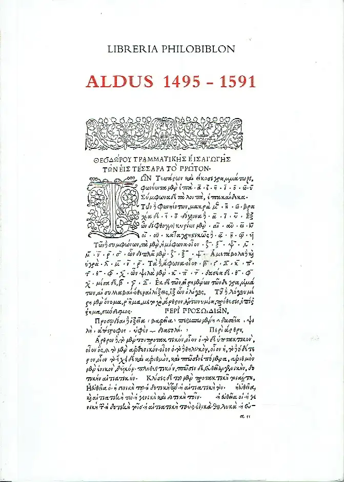 guter bis sehr guter Zustand, geringe Gebrauchs- und Alterungsspuren: Rückseite an der oberen Ecke angeknickt - Deckel diagonal leicht angeknickt - Seiten sauber und ordentlich - beiliegende Preisliste mit Notizen, Katalog der 22. Ausstellung des alten Buches, mit Preisliste als Beilage "Aldus Pius Manutius (italienisch Aldo Pio Manuzio; * 1449 in Bassiano; † 6. Februar 1515 in Venedig) war ein venezianischer Buchdrucker und Verleger. Nach Studien in Ferrara, Rom und Verona richtete er im Alter von etwa 40 Jahren in Venedig eine Druckerei ein, deren Produkte die Welt der Bücher revolutionieren sollten. In der dortigen Biblioteca Marciana stand eine umfangreiche Sammlung an griechischen Handschriften zur Verfügung, die durch die Stiftung des griechischen Kardinals Bessarion nach Venedig gekommen waren. Mit einem Kreis begabter Typografen machte sich Manutius an die Veröffentlichung dieser Texte. Seine Ausgaben, die sogenannten Aldinen, waren innovativ u. a. durch ihr kleines, dem Oktav in etwa entsprechendes Buchformat, das relativ preisgünstig hergestellt werden konnte. 1495 erschienen bei ihm die ersten Drucke der Welt in griechischen Lettern. Mit seinen Drucken griechischer und lateinischer Werke der Antike und humanistischer Autoren wie Pietro Bembo und Francesco Petrarca leistete Manutius einen wesentlichen Beitrag zur Entwicklung des Humanismus in Europa und zur Wiederentdeckung der Antike in der Renaissance. In Venedig lebte Manutius zunächst im Pfarrbezirk S. Agostino, später in S. Paternian, wo auch Andrea Torresano wirkte, mit dem zusammen er ab 1495 druckte und dessen Tochter er 1505 heiratete. Hier wohnte auch Margarete, die Witwe des Frankfurter Buchhändlers und Verlegers Peter Ugelheimer; mit ihrer Unterstützung gab Manutius 1500 die Briefe der Katharina von Siena heraus ...Nach seinem Tod führten sein Schwiegervater und seine Schwäger Druckerei und Verlag fort, bis im Jahr 1533 sein Sohn Paulus Manutius (1512–1574) die Leitung übernehmen konnte. Manutius war eine treibende Kraft bei der Wiederentdeckung der antiken Literatur in der Renaissance. Er machte gleichzeitig aus dem Handwerk eine Kunst. Er unterhielt in seinem Haus eine gelehrte Gesellschaft (auch Akademie genannt), die die Redaktion dieser Texte besorgte. Bedeutende Humanisten, darunter Hieronymus Aleander, Pietro Bembo, Erasmus von Rotterdam, Johannes Reuchlin, gehörten zu seinem Freundeskreis. Ab 1495 verlegte er fünf Bücher des Aristoteles, es folgten Werke von Theokrit, Aristophanes und Vergil, Juvenal, Petrarca, Martial, Thukydides, Sophokles und Herodot, Euripides, Homer, Pindar und Platon. Sein berühmtester Druck war wohl die Hypnerotomachia Poliphili des Francesco Colonna (1499) mit exzellenten Holzschnitten. 1502 verlegte er die Divina commedia von Dante Alighieri. Auch als Typograph hatte Manutius wesentlichen Einfluss auf die noch junge Kunst des Buchdruckes. Die in den Druckereien des 15. Jahrhunderts im Norden übliche sogenannte gotische Schrift, die aus den Handschriften abgeleitete Textura, ersetzte er durch neue, kunstvolle Lettern – die aldinischen Typen, heute Antiqua genannt. In der Ausgabe des Vergil von 1501 verwendete er erstmals die Kursivschrift (englisch italic), deren Erfindung dann sein Schriftschneider Francesco Griffo für sich reklamierte, nachdem dieser 1502 im Streit von Manutius geschieden und zu dessen Konkurrent Girolamo (Gershon) Soncino gewechselt war. Für die typographische Gestaltung einer Interpunktion wurden seine Ausgaben der Werke Bembos und Petrarcas unter anderem durch die regelmäßige Verwendung des festen Punktes am Satzende und durch die Formgebung für das Komma zur Markierung von Perioden innerhalb des Satzes wegweisend. Das Druckerzeichen der Aldus-Presse zeigt einen Anker und einen Delphin: Der Anker steht als Symbol für die Langsamkeit, der Delphin für die Geschwindigkeit. Es war seit 1502 in Gebrauch und wurde später in zahlreichen Emblembüchern aufgegriffen. Das hier im Bild formulierte Motto heißt Festina lente (Eile mit Weile). Es wird Augustus zugeschrieben und ist in Suetons Biographien und den Noctes Atticae des Aulus Gellius überliefert ..." (Wikipedia), kartoniert, ca. 17 x 24, 124 Seiten mit zahlreichen Bildern + Beilage