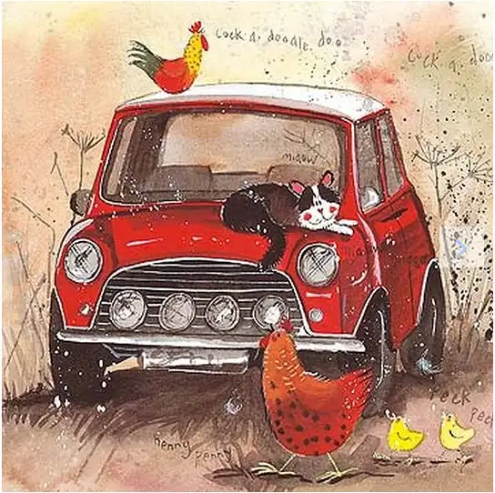 Alex Clark Auto Mini mit Tiere Grußkarte 140x140 mm incl. Umschlag 0018