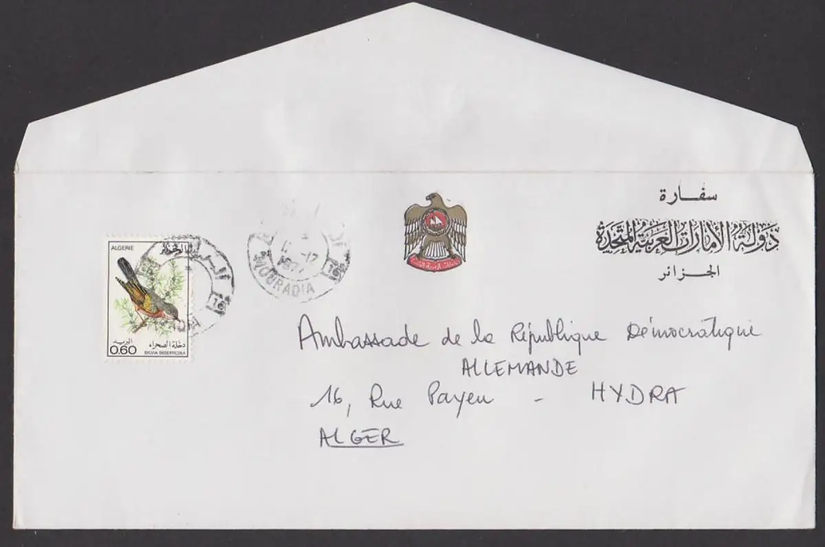 Algerie Mouradia, letter 1979 an Ambassade de la Democratique Allemande Hydra