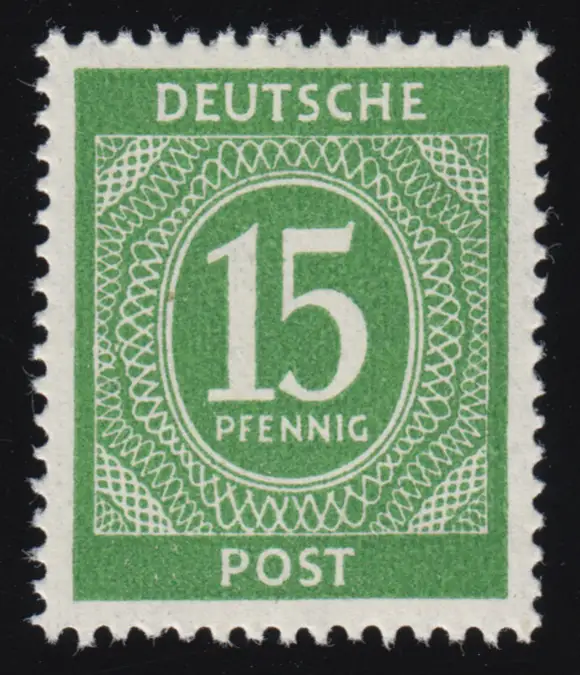 Alliierte Besetzung 922c Ziffer 15 Pf, dunkelsmaragdgrün, ** geprüft
