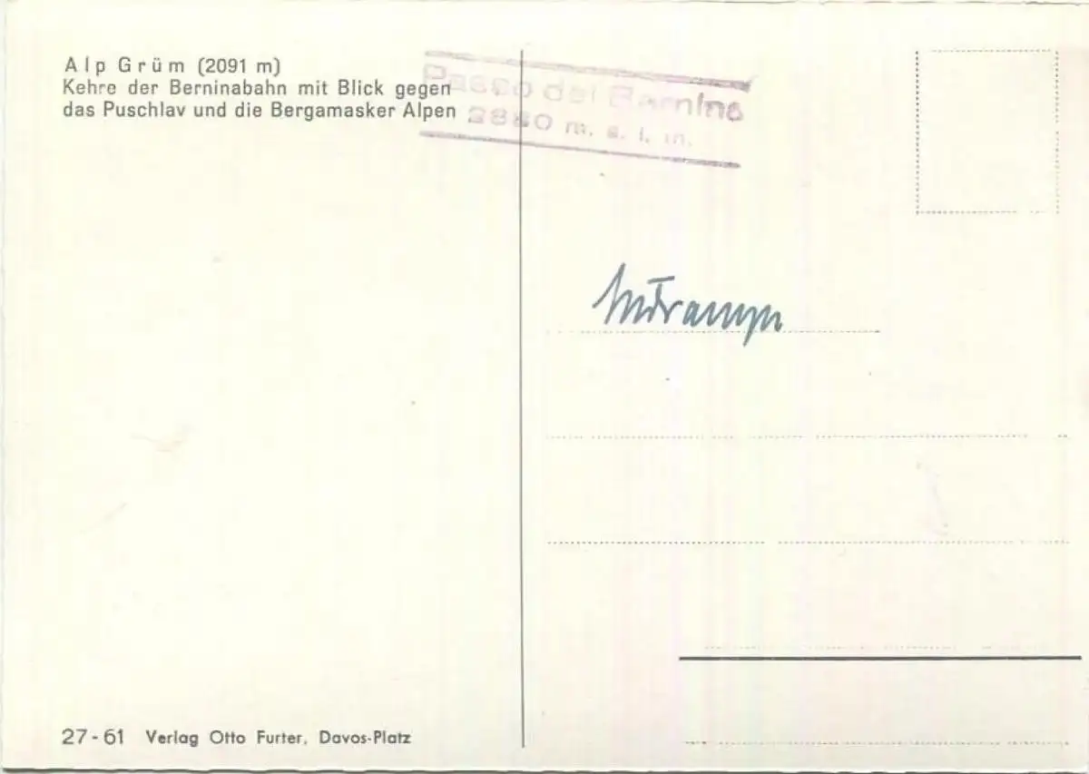 Alp Grüm - Kehre der Berninabahn - Foto-AK Grossformat - Verlag Otto Furter Davos-Platz