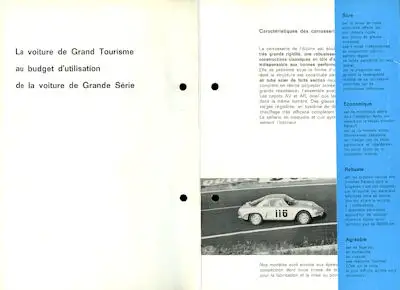 Umschlag mit 3 Blättern DinA5 Cabriolet et Coupé Sport, Berlinette und Coupé GT 4 Französischer Text Guter Zustand, gelocht