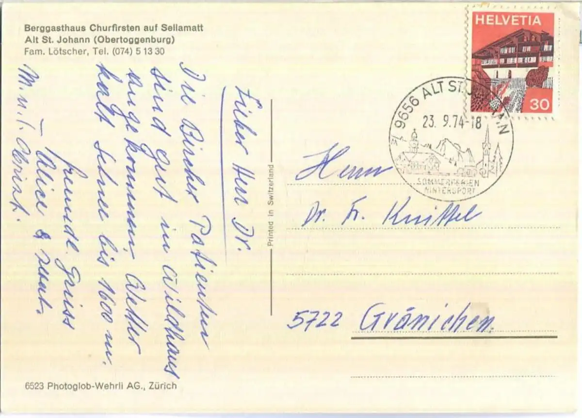 Alt St. Johann - Berggasthaus Churfirsten auf Sellamatt - Verlag Photoglob-Wehrli AG Zürich (E91288) gel. 1974