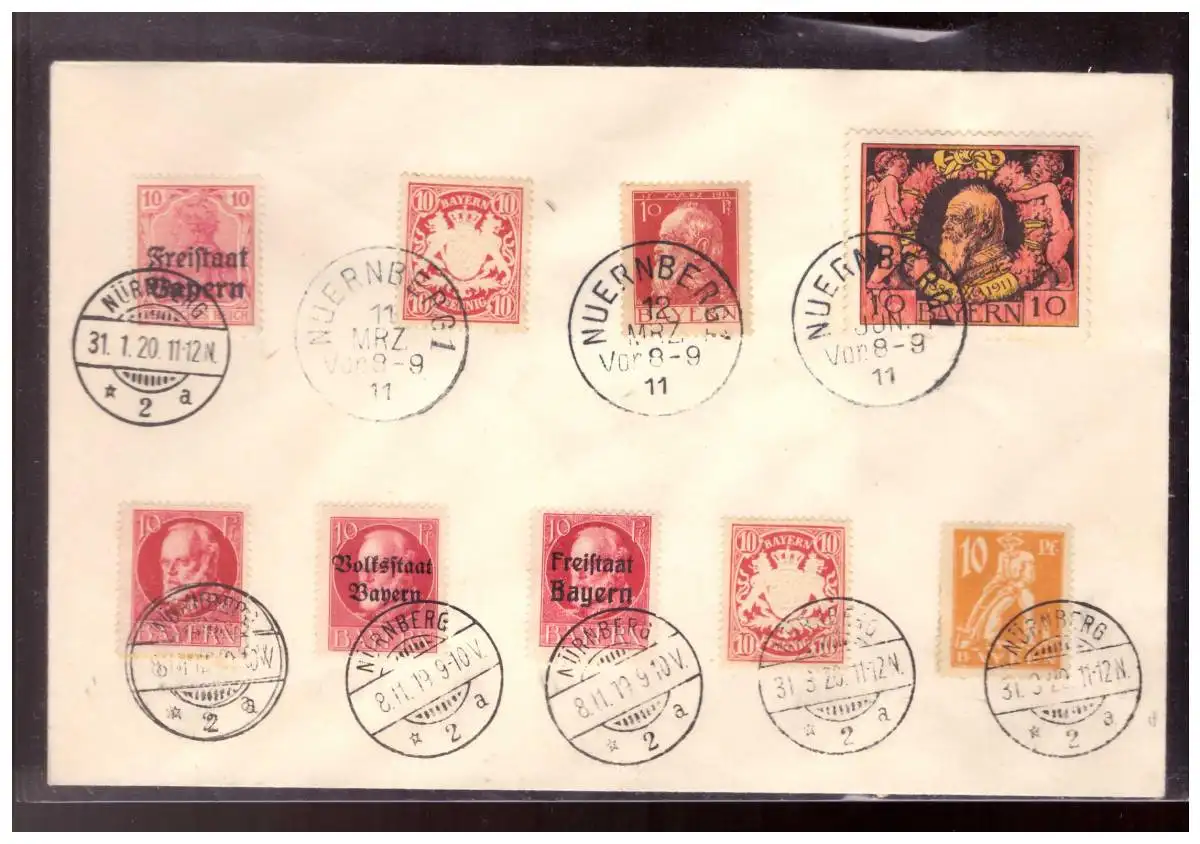 AD- Bayern (020086) Stempelumschlag nur rote Marken aus diversen Sätzen alle mit Stempel Nürnberg