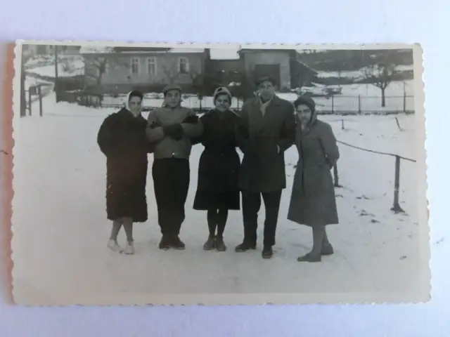 Alte AK Foto fünf junge Menschen im Schnee Winter [D876]