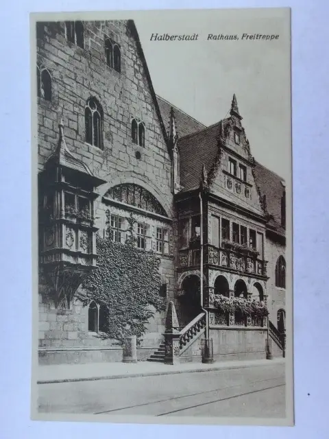 Alte AK Halberstadt Rathaus Freitreppe [aO1349]