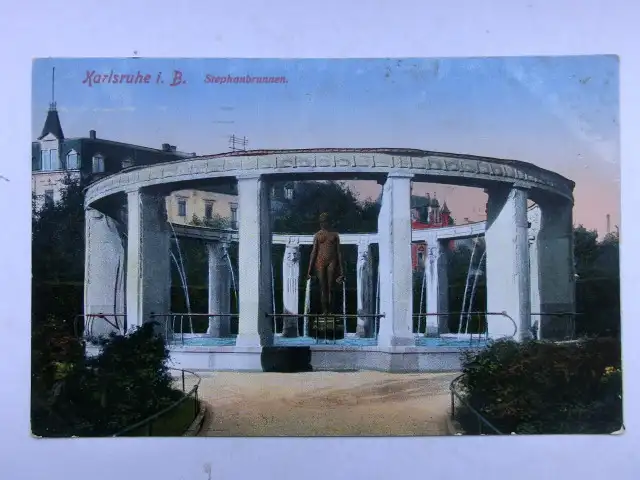 Alte AK Karlsruhe Stephansbrunnen 1917 [aU410]