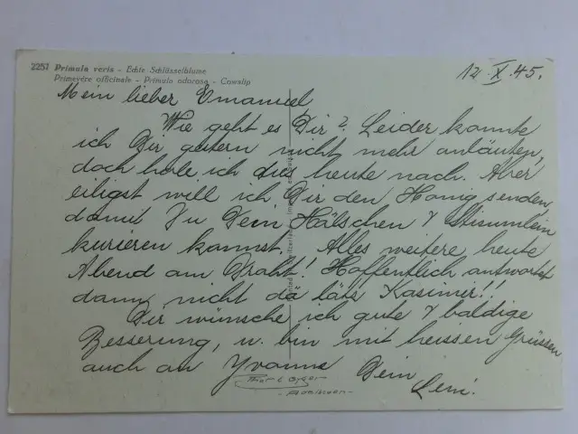Alte AK Kunstpostkarte Schlüsselblume 1945 [aU40]
