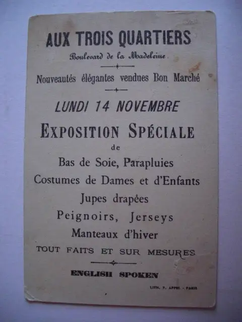 Alte AK Paris Sammelbild Aux Trois Quartiers 7 x 11cm [B363]