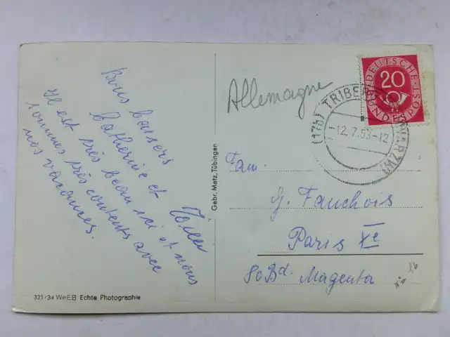 Alte AK Triberger Wasserfall Schwarzwald 1953 [R547]