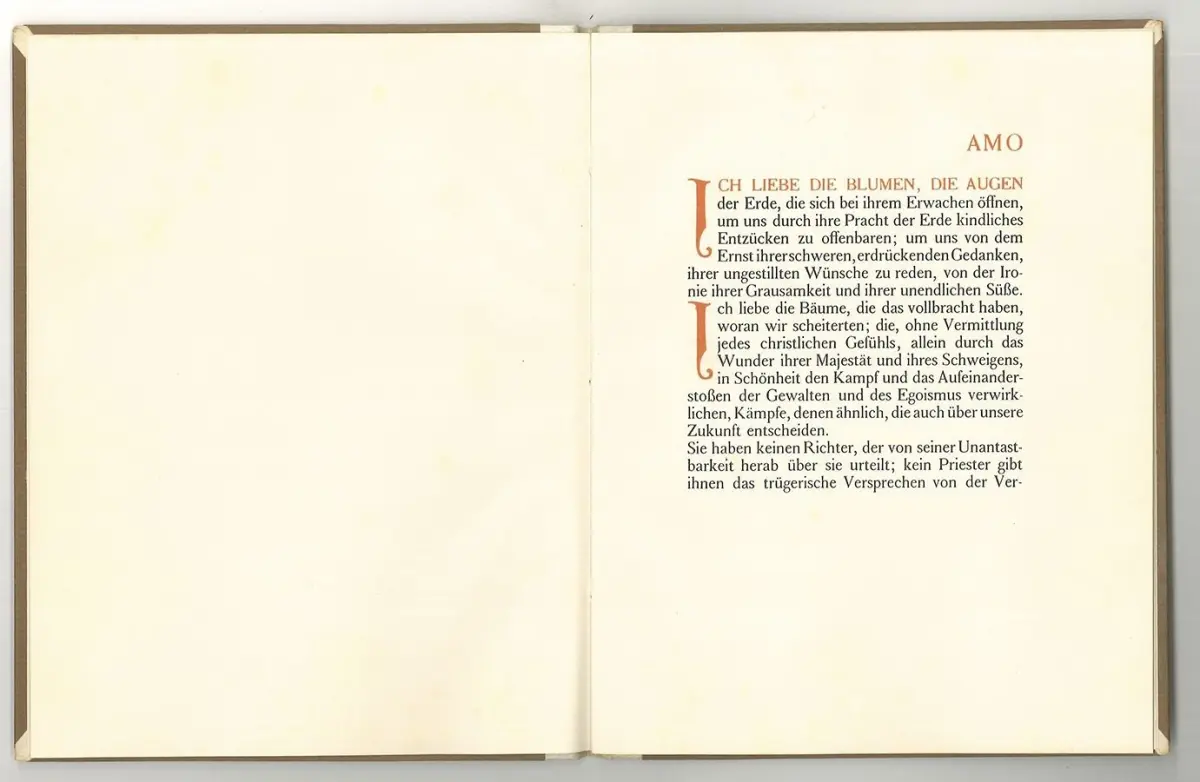 Hagen, Henry van de Velde-Gesellschaft 1963. (Nachdruck der Ausgabe: Leipzig, Insel-Verlag 1909). gr.-8°. 7 nn. Bll. OHpgmt.-Bd. mit Deckeltitel. Sehrb gut erhalten.
