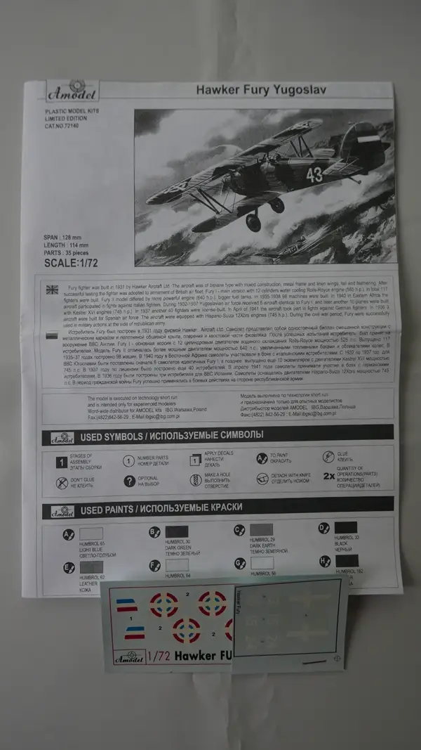 Amodel, Hawker Fury (Yugoslav Air Force, 1939)-1:72-72140-Modellflieger-OVP-0418