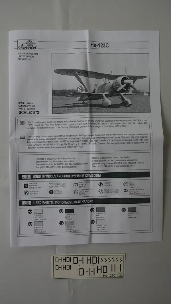 Amodel, Hs-123C-1:72-72248-Modellflieger-OVP-0415