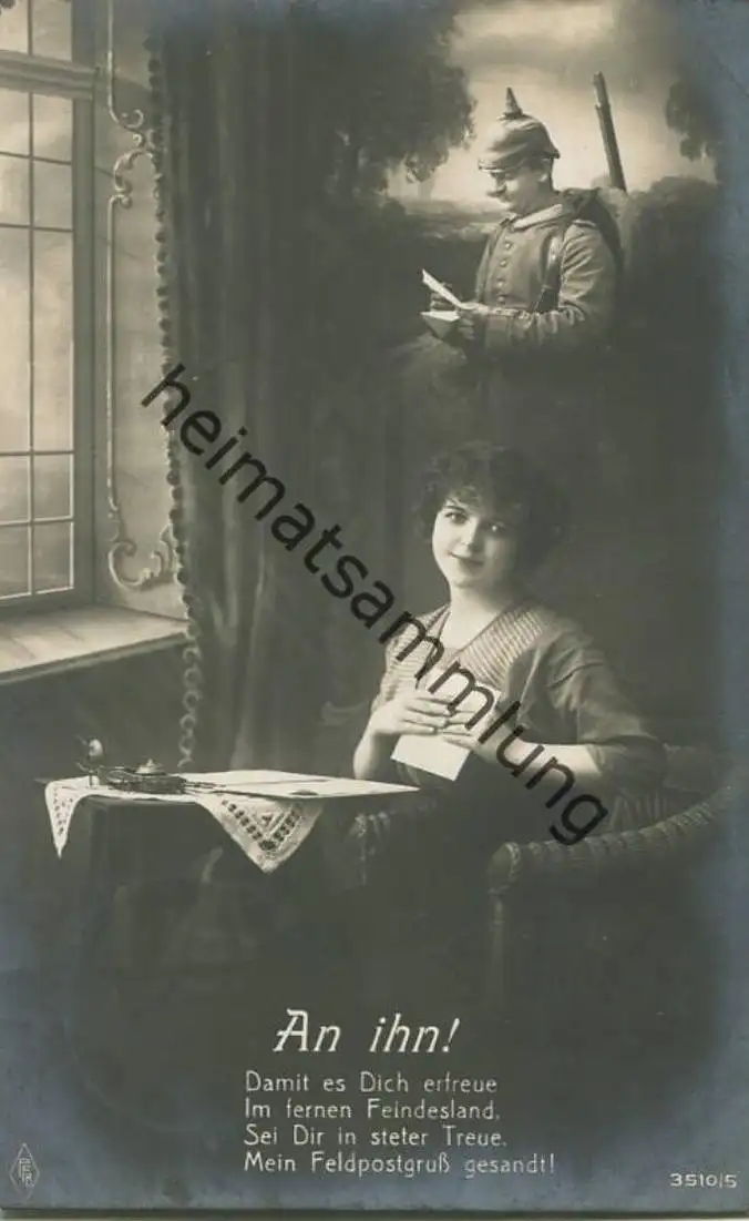 An Ihn! - Nr. 3510/5 - Feldpost - Gebrauchsspuren (E23327) gel. 1915