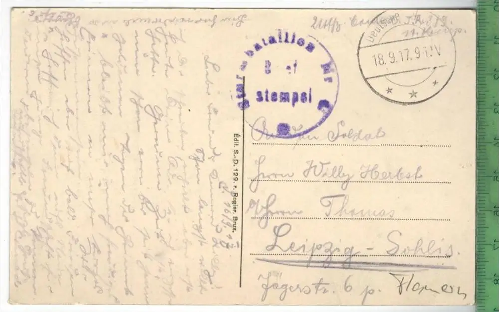 Andenarde l´Ecluse-1917-, Verlag: Rogier, Brux, FELD- POSTKARTE ohne Frankatur, ohne Stempel ,18.9.17 ,Erhaltung: I-II, Karte wird in Klarsichthülle verschickt.