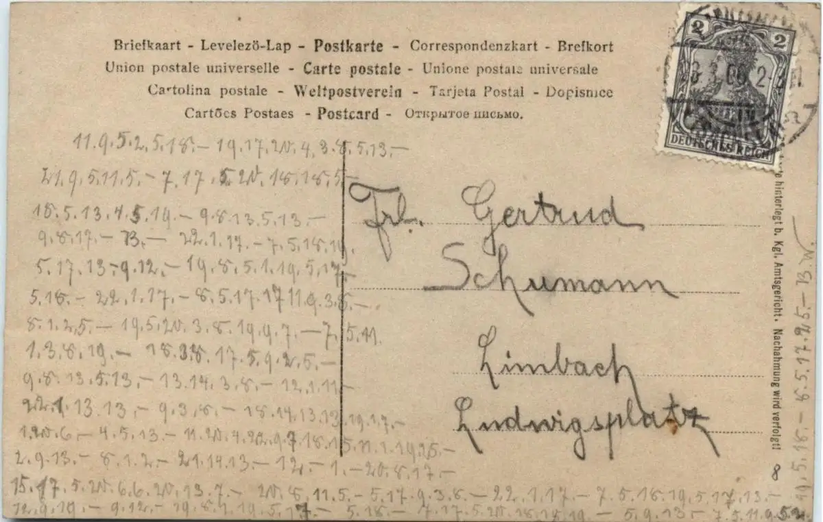 Danke. Alles Bestens. Können Sie mir allenfalls mitteilen, aus welchem Jahr die Postkarte stammt? Besten Dank.