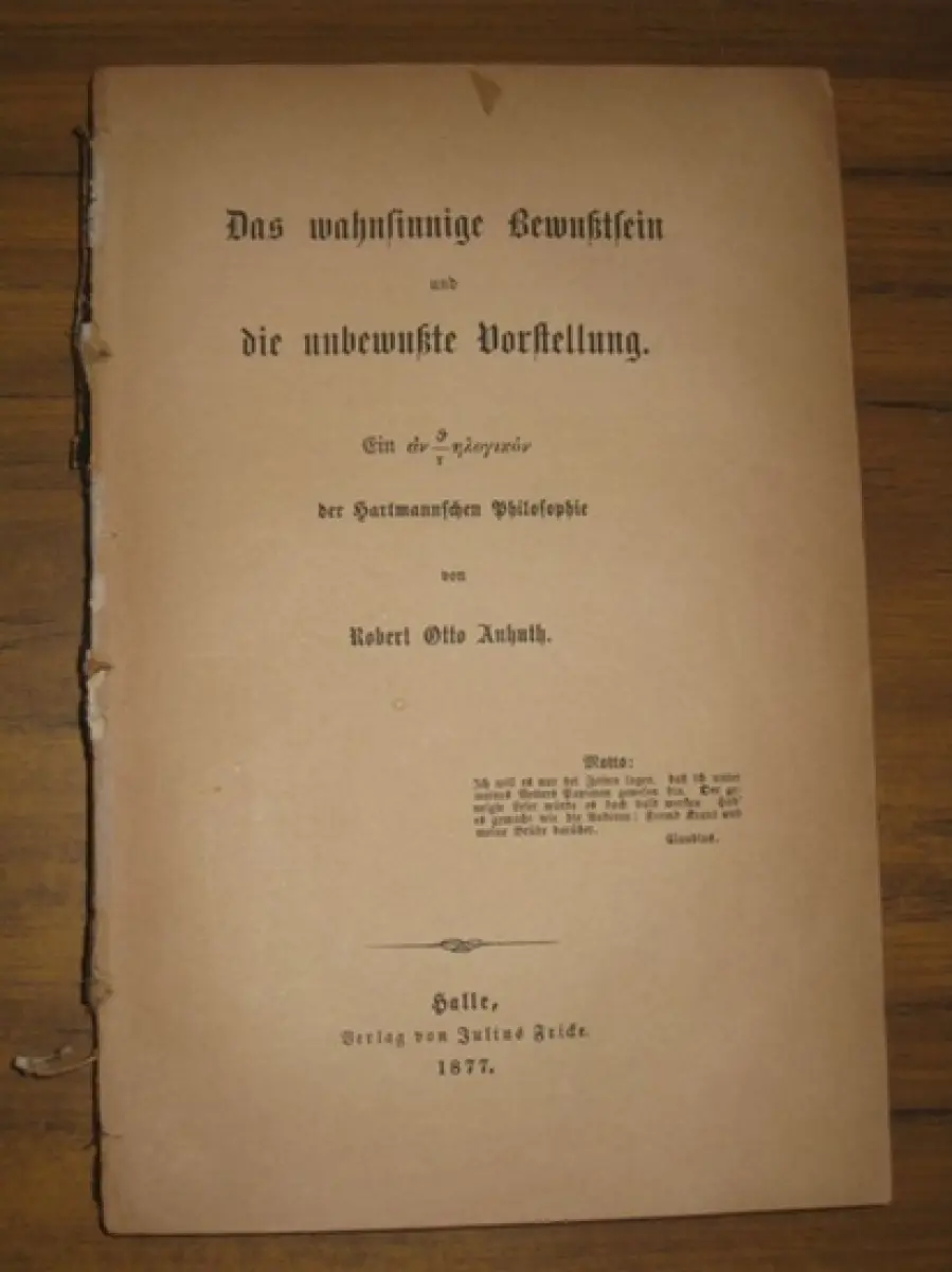 Anhuth, Robert Otto: Das wahnsinnige Bewußtsein und die unbewußte Vorstellung. Ein [anth/telogikon] der Hartmannschen Philosophie.