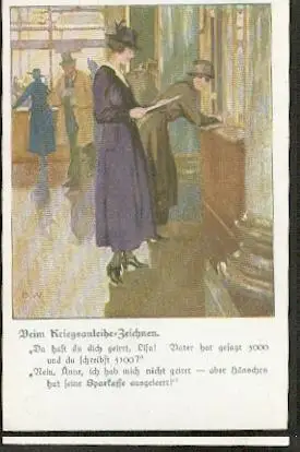 Anleihe. Beim Kriegsanleihe Zeichnen. - Nicht gelaufen. (Kriegswirtschaft, Anleihen, Künstler)