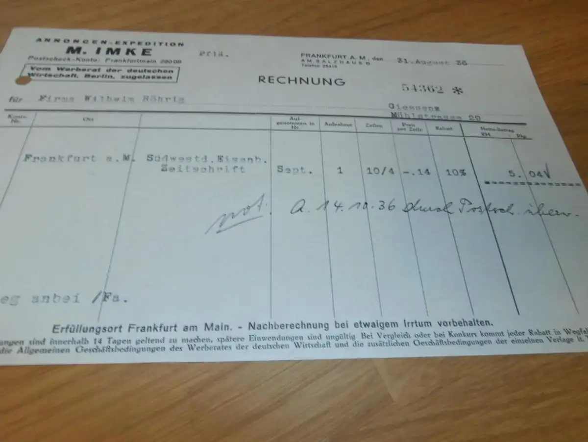 Annoncen-Experte - M- Imke in Frankfurt a. Main , 1936 , Werbung , Reklame , altes Dokument !!!