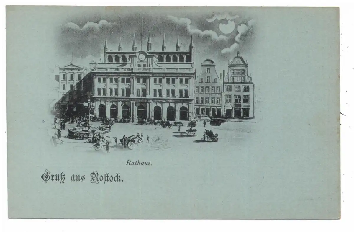 [Ansichtskarte] 0-2500 ROSTOCK, Rathaus, Mondscheinkarte, ca. 1900.