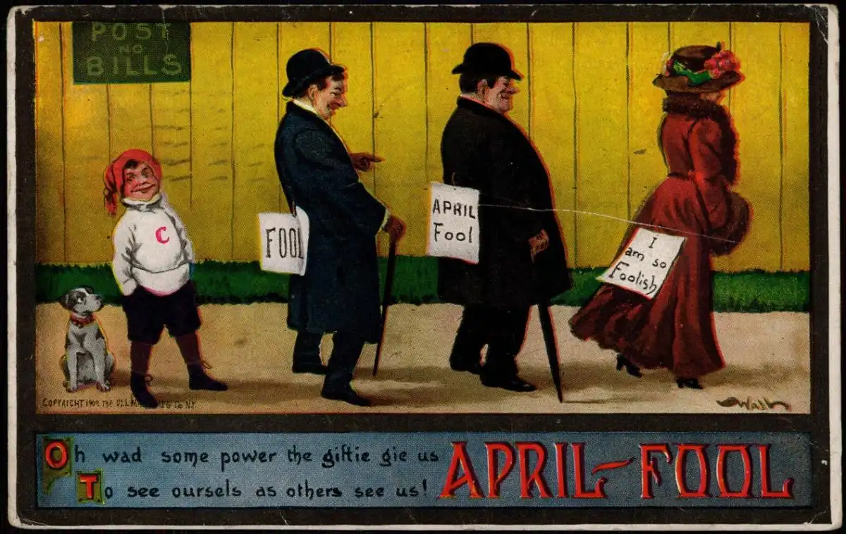Ansichtskarte 1. April Scherzkarte FOOL APRIL FOOL I am so Foolish 1911