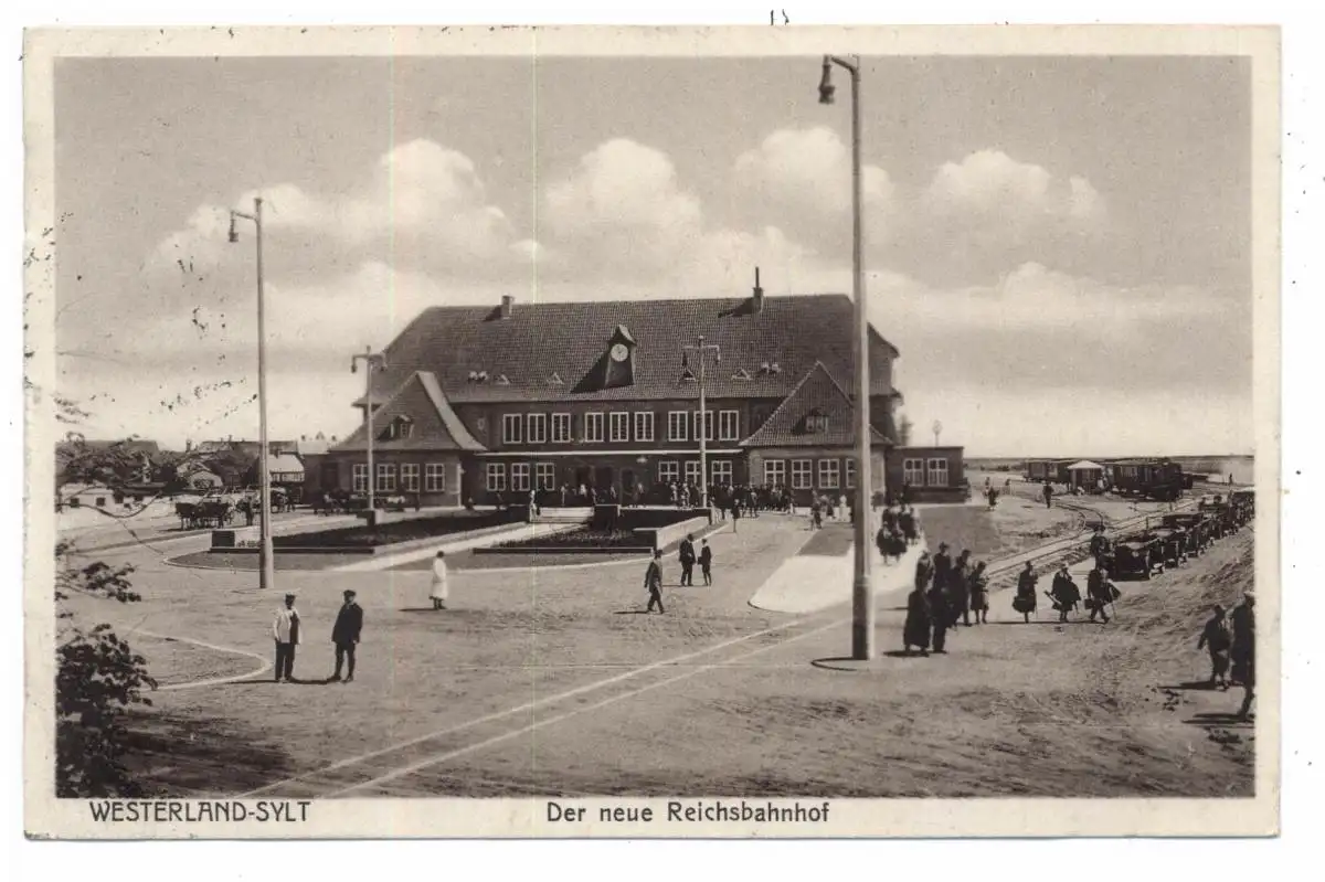 [Ansichtskarte] 2280 SYLT - WESTERLAND, Der neue Reichsbahnhof, 1929, Bahnpost Flensburg - Westerland.