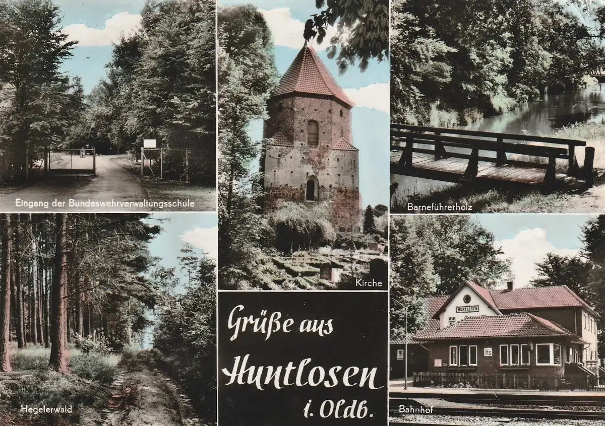 [Ansichtskarte] 2907 GROSSENKNETEN - HUNTLOSEN, Bahnhof, BW-Verwaltungsschule, Kirche...