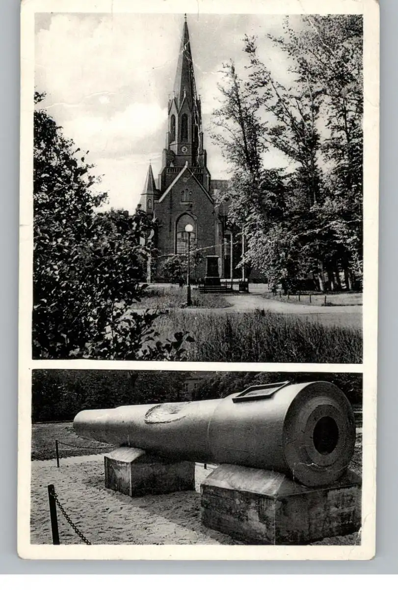 [Ansichtskarte] 2940 WILHELMSHAVEN, Christuskirche & 28 cm Geschützrohr der SMS SEYDLITZ, Druckstellen.