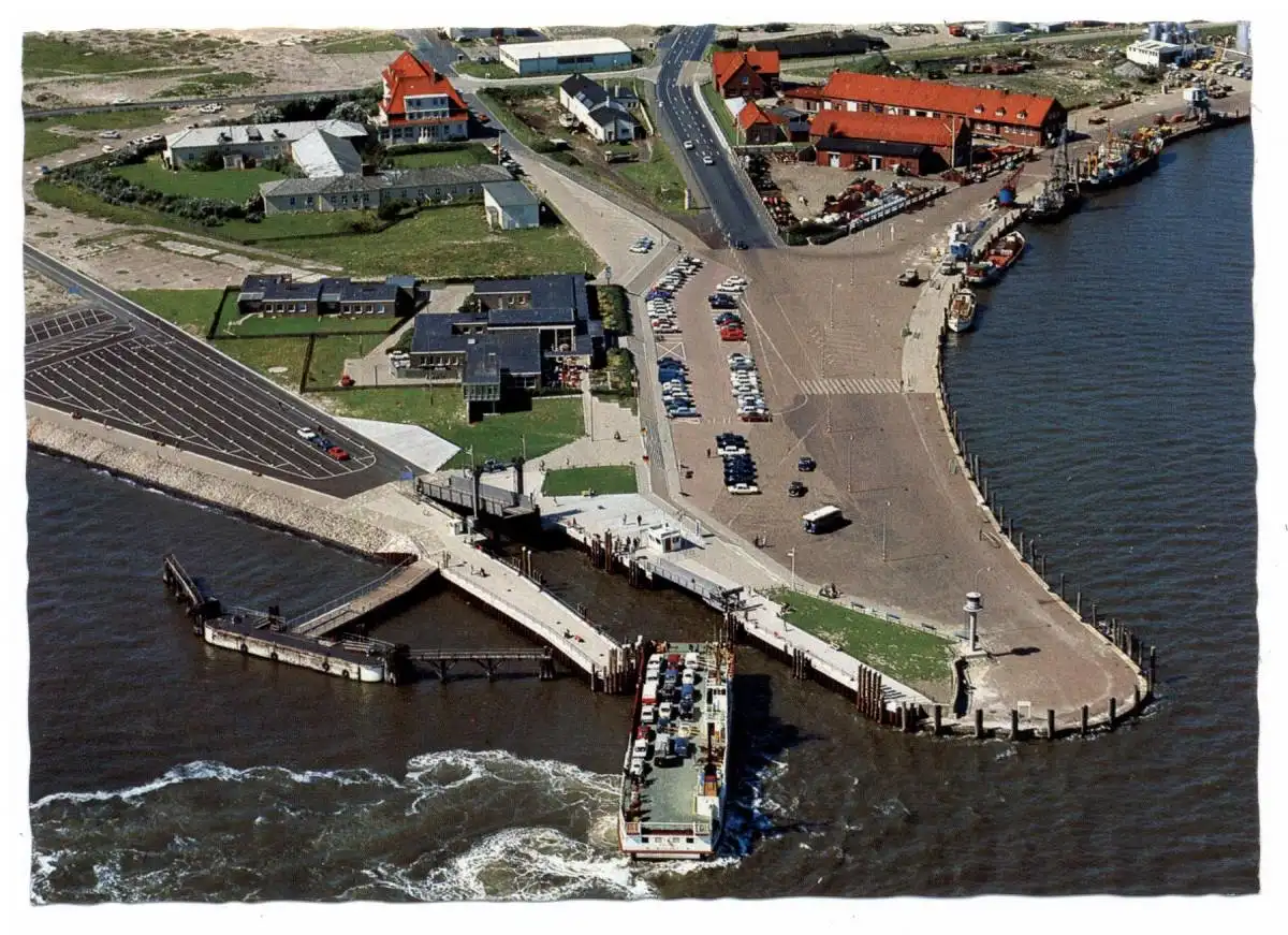 [Ansichtskarte] 2982 NORDERNEY, Hafen, Fähre, Fähranleger, Luftaufname.