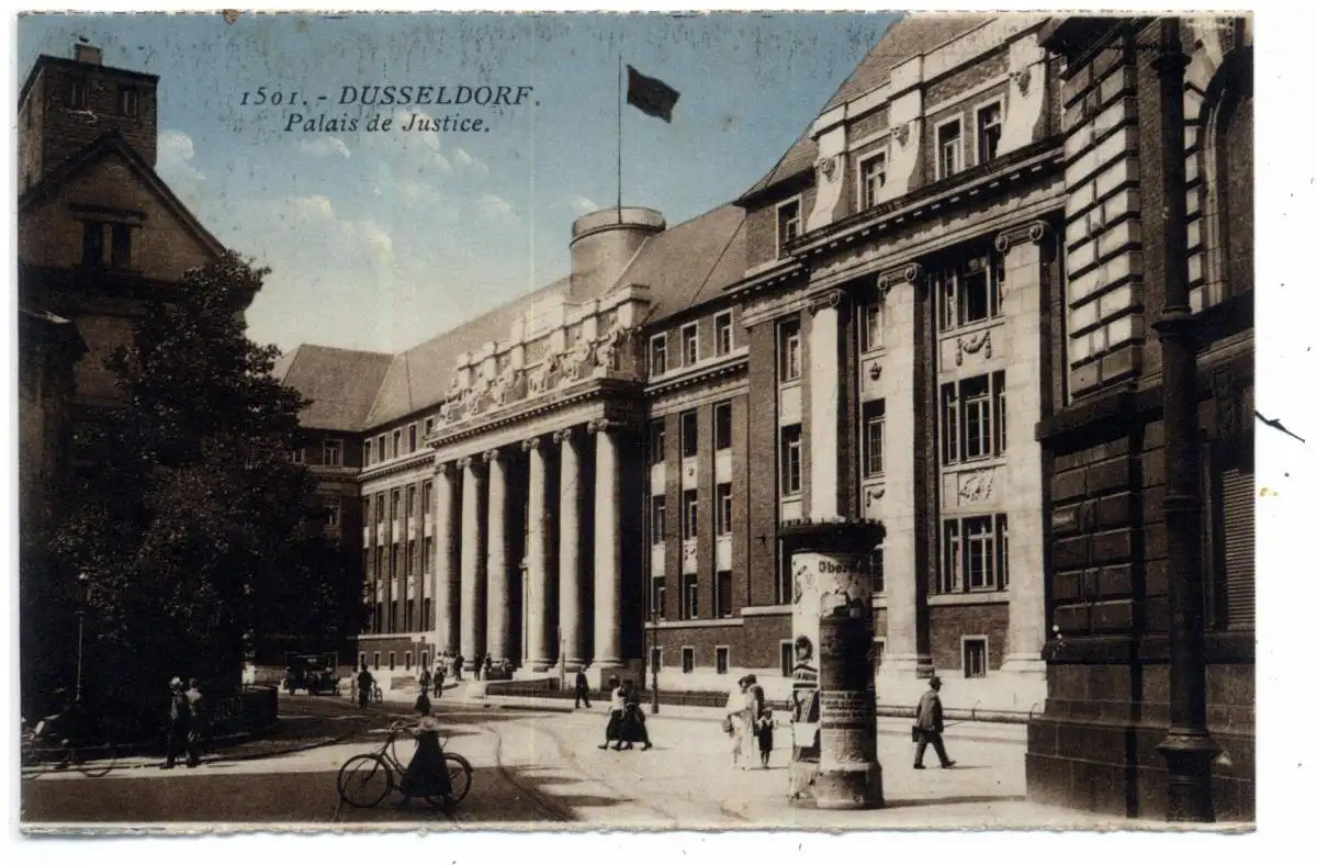 [Ansichtskarte] 4000 DÜSSELDORF, Justizpalast, Litfaßsäule, 1924, franz. Bestzung.
