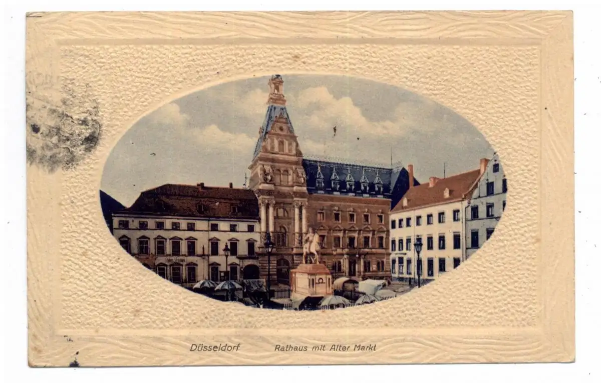 Titel: 4000 DÜSSELDORF, Rathaus und Alter Markt im Passepartoutrahmen, 1916, color