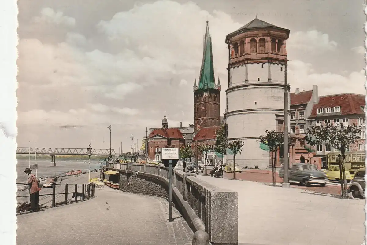 Titel: 4000 DÜSSELDORF, Rheinufer, Schloßturm, Lambertuskirche, Oldtimer