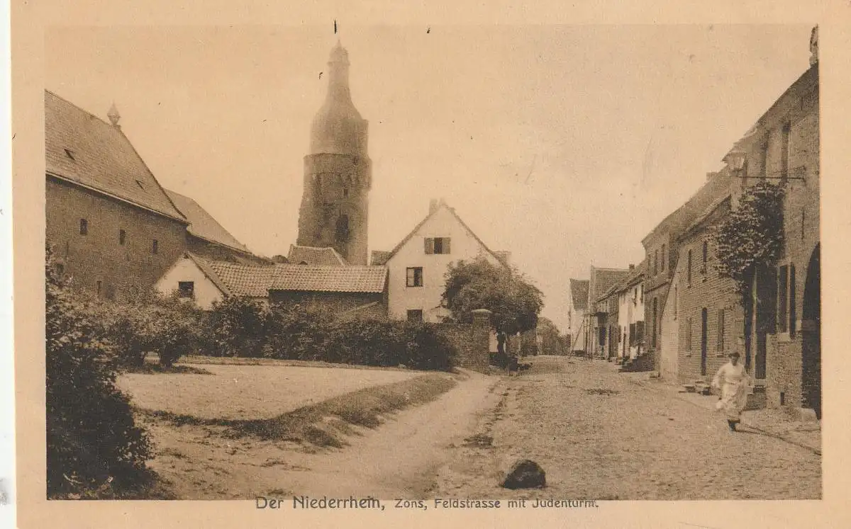 [Ansichtskarte] 4047 DORMAGEN - ZONS, Feldstrasse mit Judenturm, 1908.