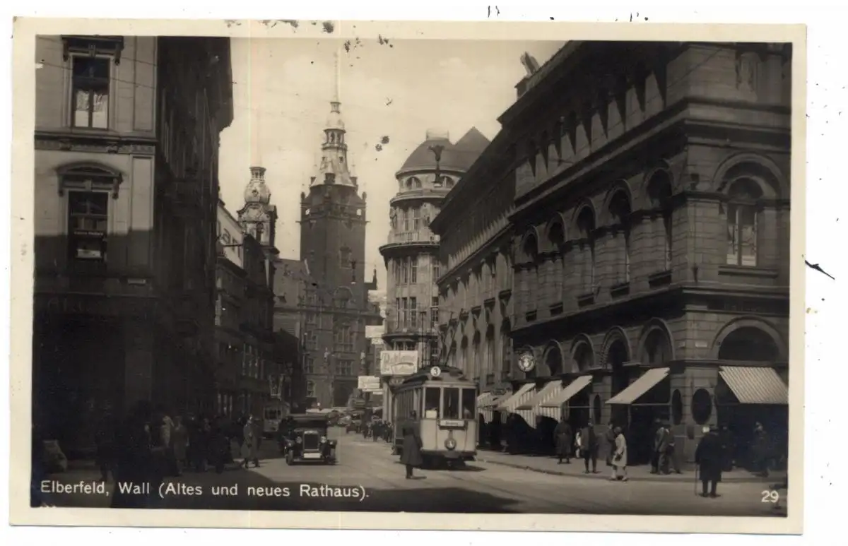 Titel: 5600 WUPPERTAL - ELBERFELD, Wall, altes & neues Rathaus, Strassenbahn - Linie 3, 1929