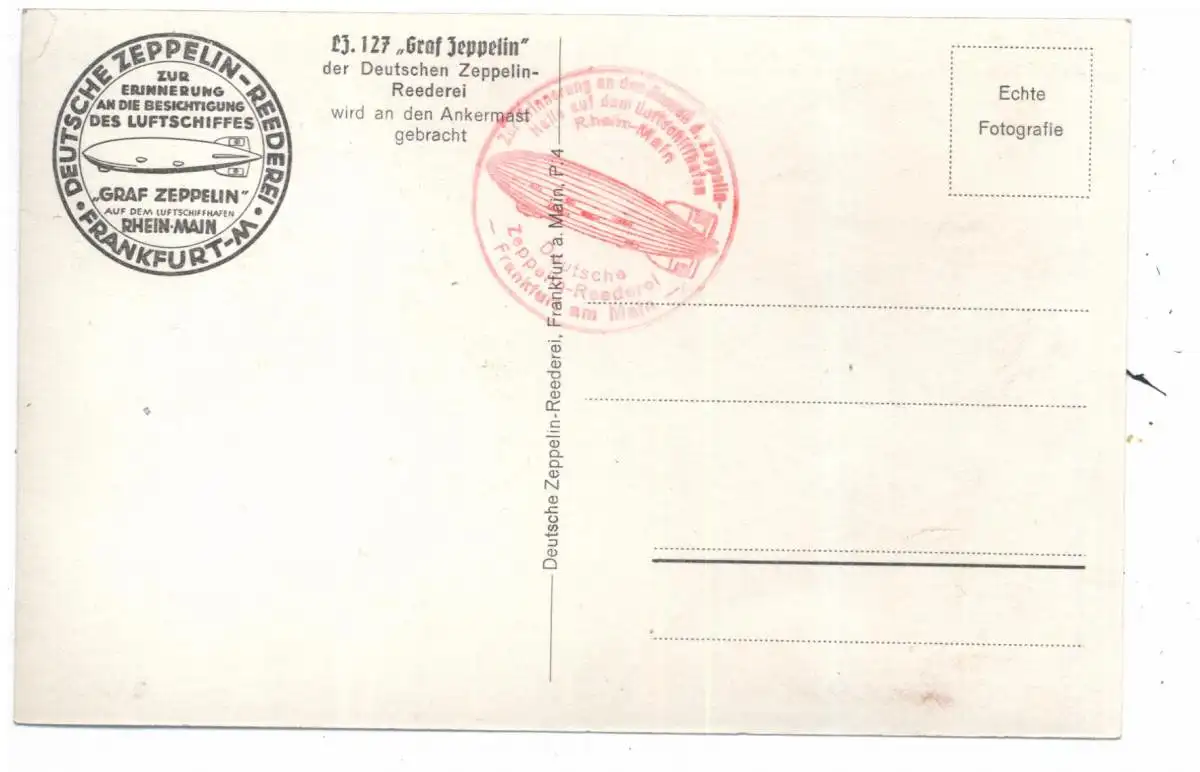 [Ansichtskarte] 6000 FRANKFURT, Luftschiffhafen Rhein - Main, LZ 127 "Graf Zeppelin".