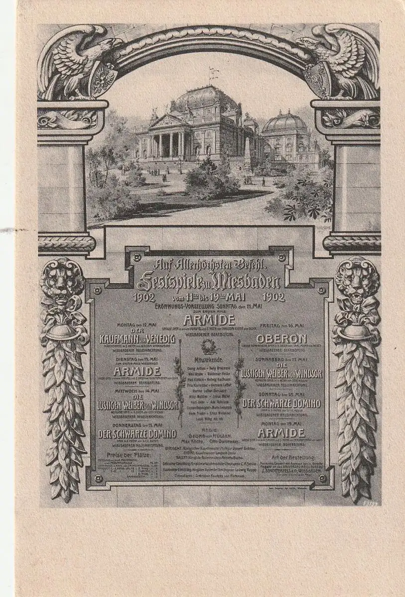 [Ansichtskarte] 6200 WIESBADEN, Ereignis, Festspiele Mai 1902, Programm.