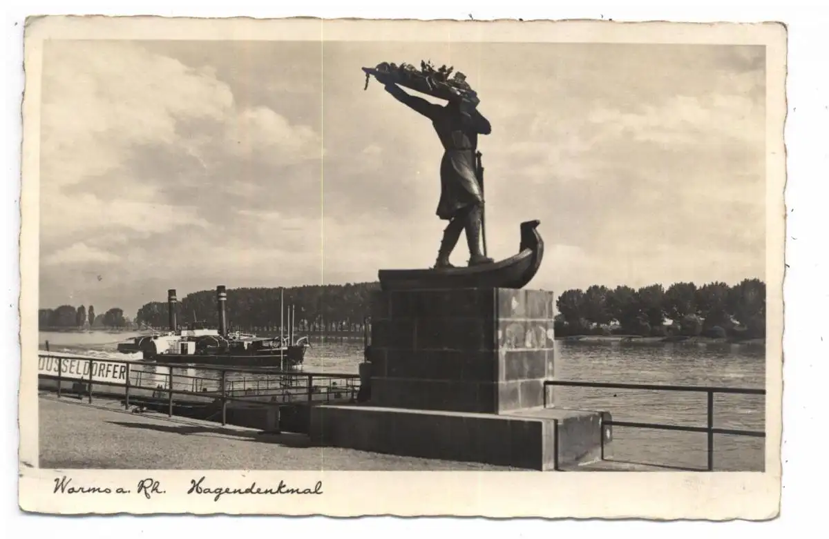 [Ansichtskarte] 6520 WORMS, Hagendenkmal, Anleger der Köln - Düsseldorfer, Frachtschiff - Schlepper.