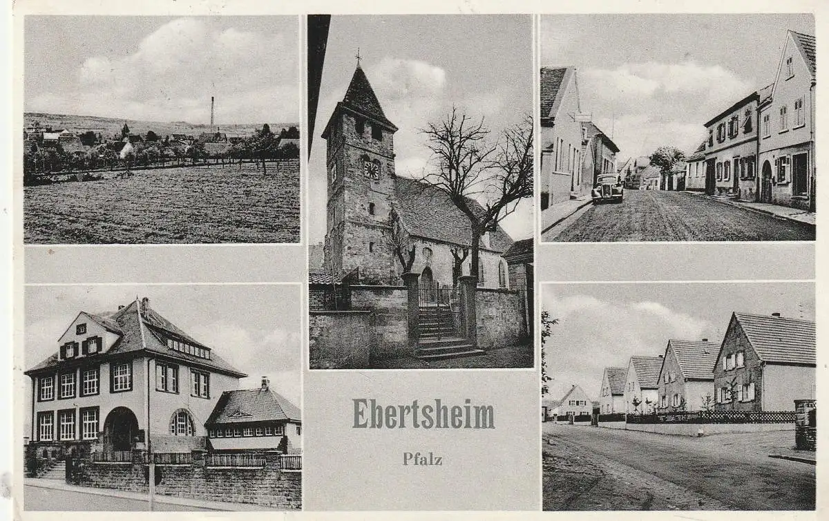 Titel: 6719 EBERTSHEIM, Strassenansichten, Kirche, Rathaus..., 1955