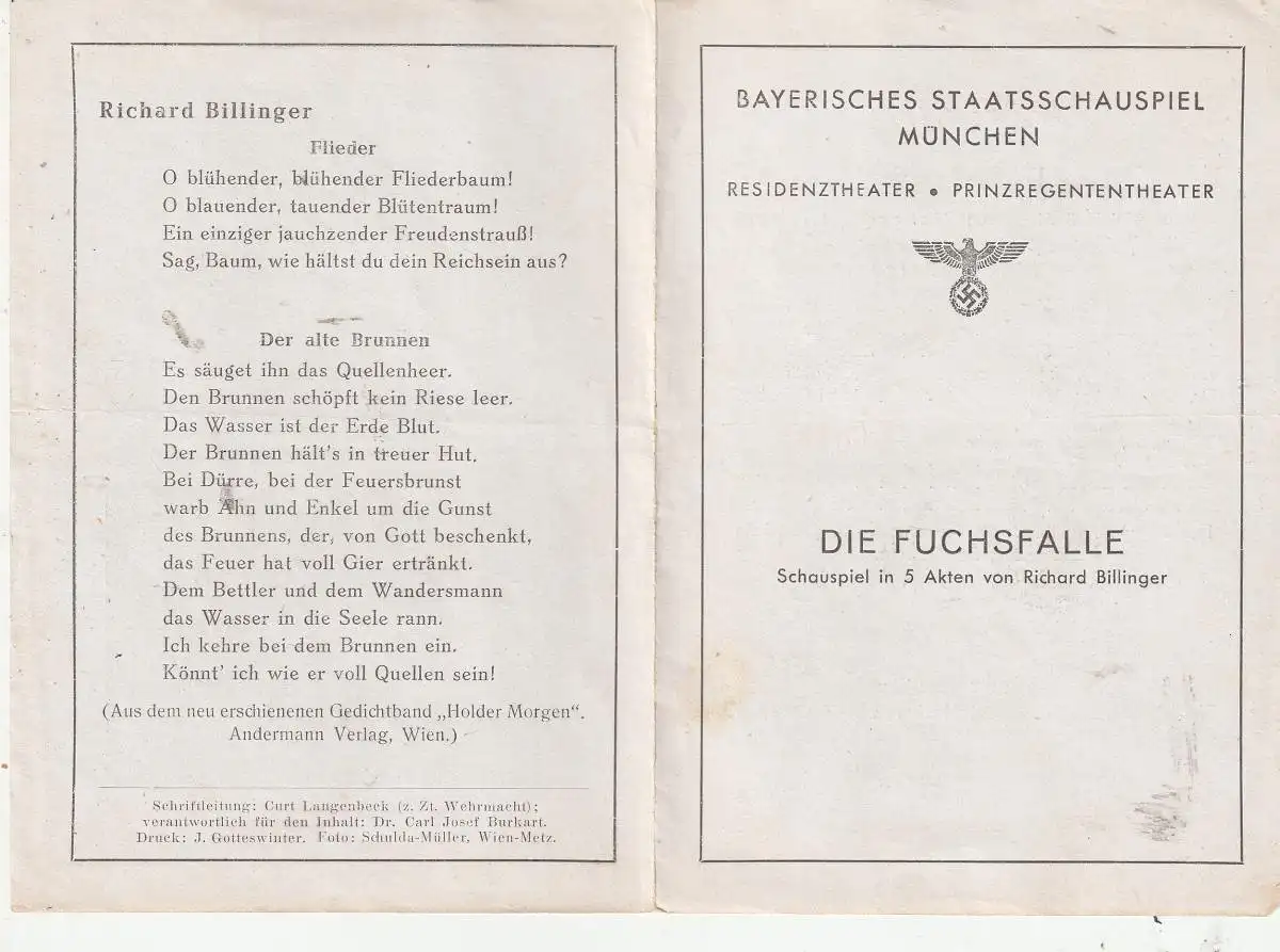 Titel: 8000 MÜNCHEN, Bayerisches Staatsschauspiel, 3 Programmhefte 1943, altersbedingte Erhaltung