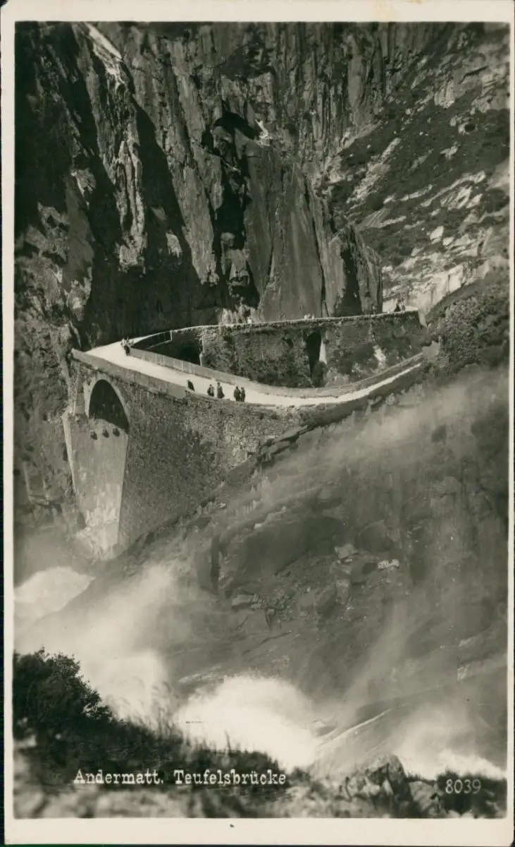 Ansichtskarte Andermatt Teufelsbrücke, Wasserfall 1930