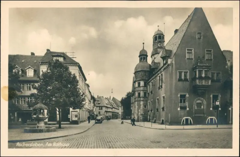 Ansichtskarte Aschersleben am Rathaus Straßenpartie 1934