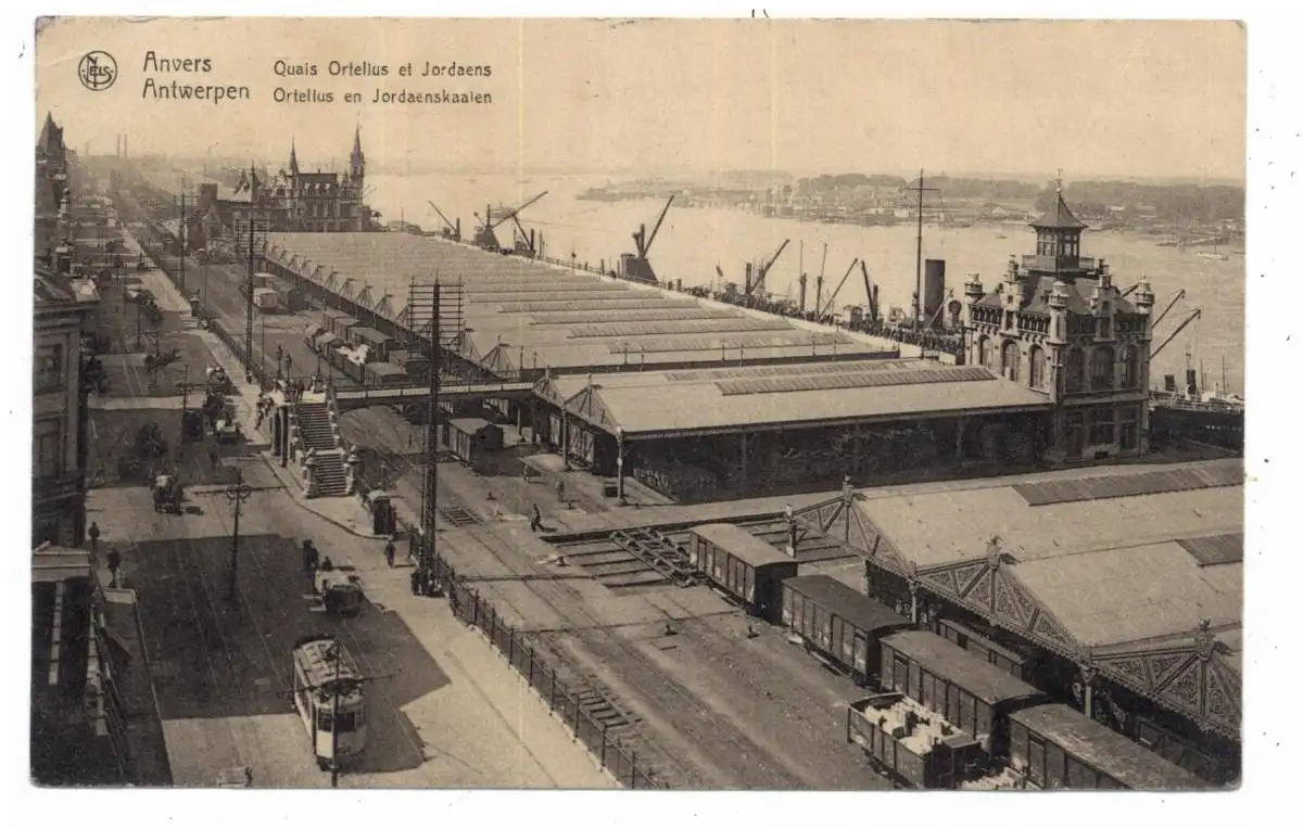 [Ansichtskarte] B 2000 ANTWERPEN, Ortellus en Jordaenskaaien, Tram, 1928, Thill, Serie 25 - # 82.