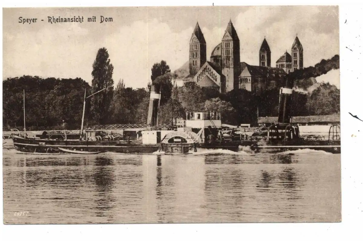 [Ansichtskarte] BINNENSCHIFFE - RHEIN, Frachtschiff "STADT STRASSBURG HP II" vor Speyer.