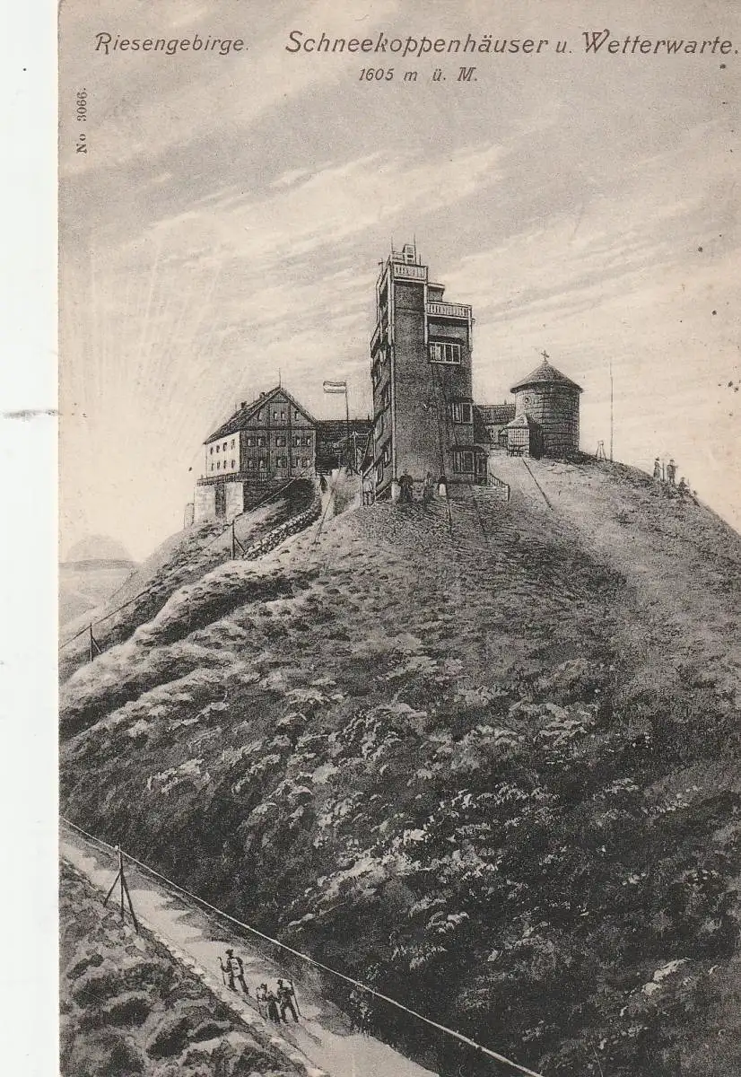 [Ansichtskarte] BÖHMEN & MÄHREN, PETZER / PEC POD SNEZKOU, Schneekoppenhäuser und Wetterwarte, 1917, deutsche Feldpost.