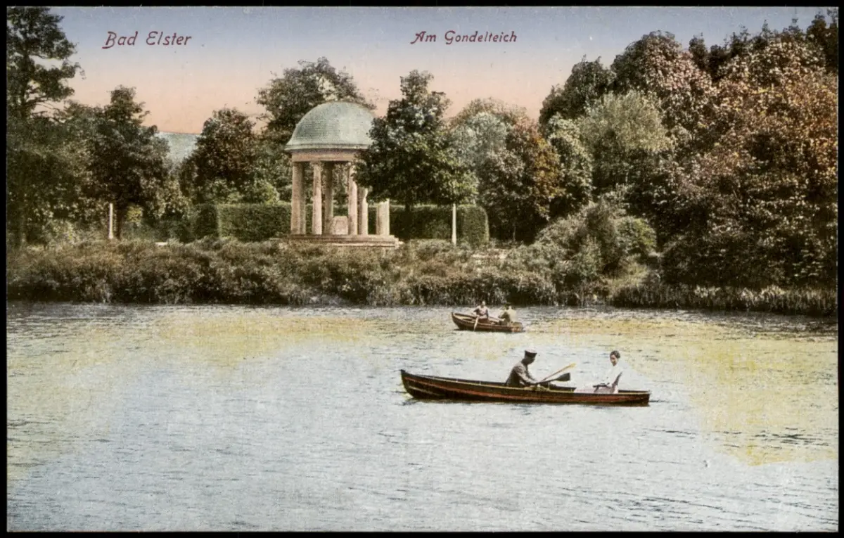 Ansichtskarte Bad Elster Ruderer auf dem Gondelteich 1920