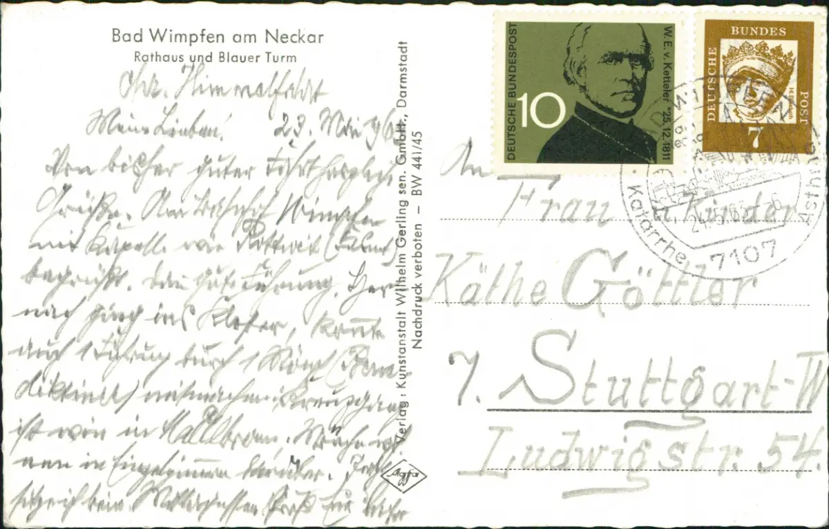 Ansichtskarte Bad Wimpfen Rathaus u. Blauer Turm 1963