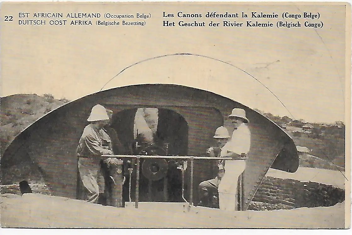 Ansichtskarte Belgisch Kongo, Besetzung DOA, 1920: Les Canons défant la Kalemie
