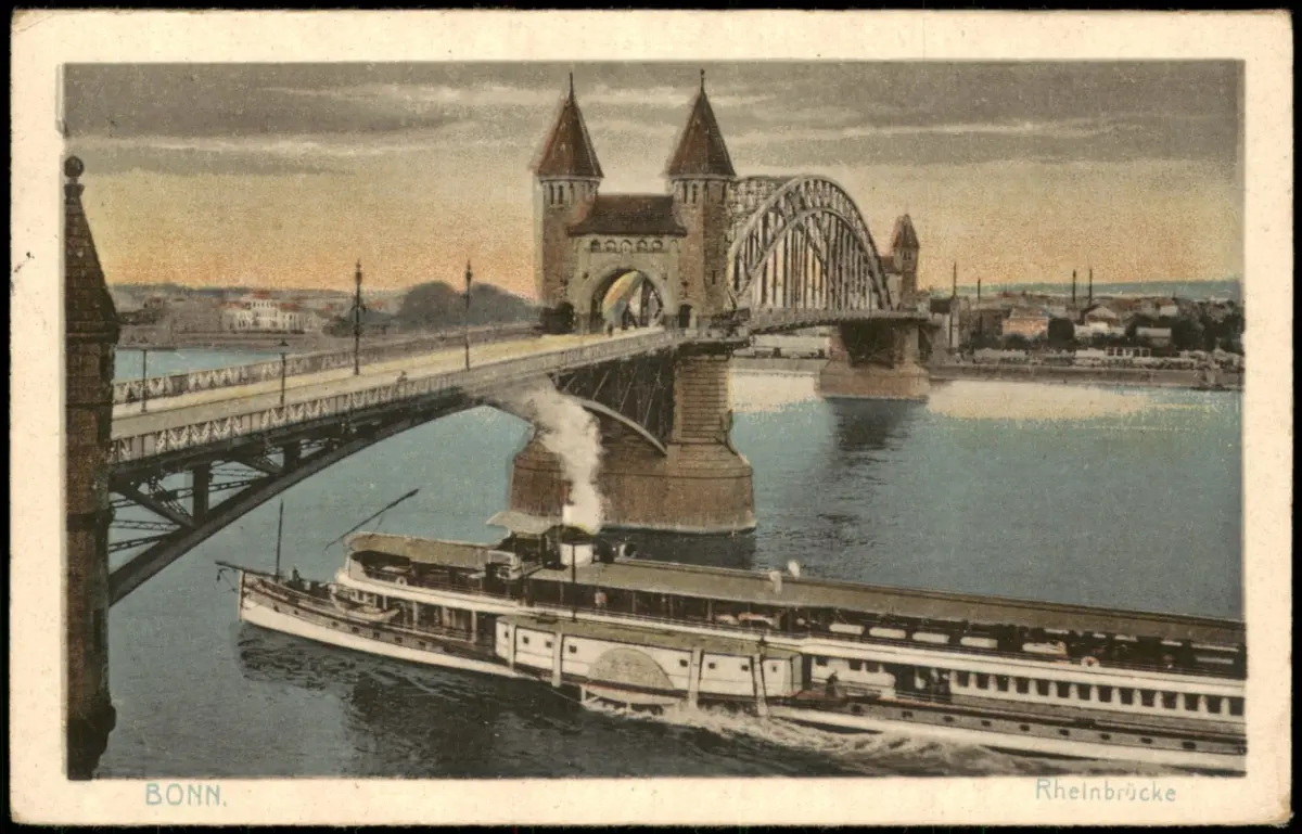 Ansichtskarte Bonn Rhein Dampfer passiert Rheinbrücke 1971/1920